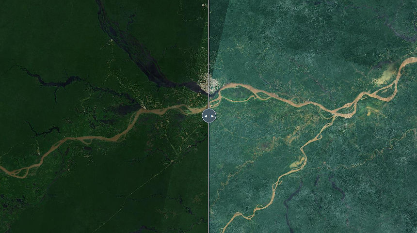 Endless sunshine, eternal summer - the Sentinel-2 cloudless layer combines trillions of pixels collected during differing weather conditions during each year and merges them into a sunny homogeneous mosaic, almost free from satellite and atmospheric effects. Our thanks go to the European Commission and the European Space Agency for the free, full, and open Sentinel-2 data.